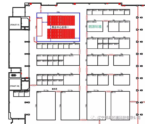 朗源環(huán)境展位位于8號館B館展會中心會展旁,平面圖如下: