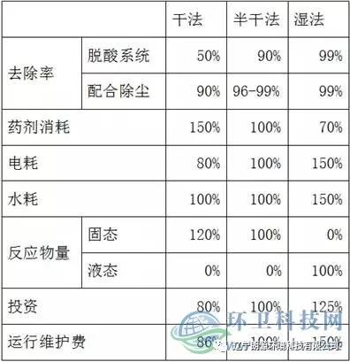 1.脫酸效率:濕法>半干法>干法;